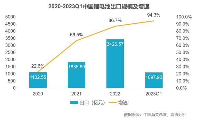 鋰電池成為新的出口增長點,2023年一季度鋰電池出口增長94.3%