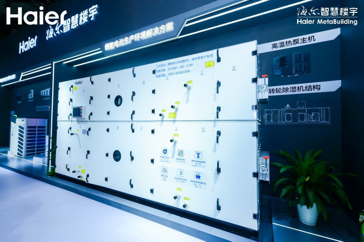 展會現(xiàn)場,海爾智慧樓宇儲能溫控產(chǎn)品設(shè)計總監(jiān)王軍分享了其儲能全產(chǎn)業(yè)鏈解決方案,屬行業(yè)首例。具體來看,在儲能電池生產(chǎn)場景中,推出轉(zhuǎn)輪除濕+高溫?zé)岜迷偕囊惑w式熱回收集成方案,達(dá)到-40℃到-80℃的露點溫度,保障安全的生產(chǎn)環(huán)境。此外,該方案中應(yīng)用的熱泵技術(shù)更加節(jié)能環(huán)保,實現(xiàn)系統(tǒng)節(jié)能50%,也降低了企業(yè)運行成本。
