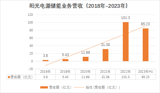 除了出貨量之外,業(yè)績(jī),也是一面鏡子,它是公司過往戰(zhàn)略的倒影。儲(chǔ)能營(yíng)收的飛速增長(zhǎng),無疑也印證了陽光電源儲(chǔ)能布局和戰(zhàn)略定位的成功。2023年4月25日,陽光電源披露2022年年度報(bào)告,其儲(chǔ)能系統(tǒng)營(yíng)收實(shí)現(xiàn)101.26億,首次破百億。2023年半年報(bào)顯示,僅半年其儲(chǔ)能營(yíng)收已經(jīng)高達(dá)85.23億。