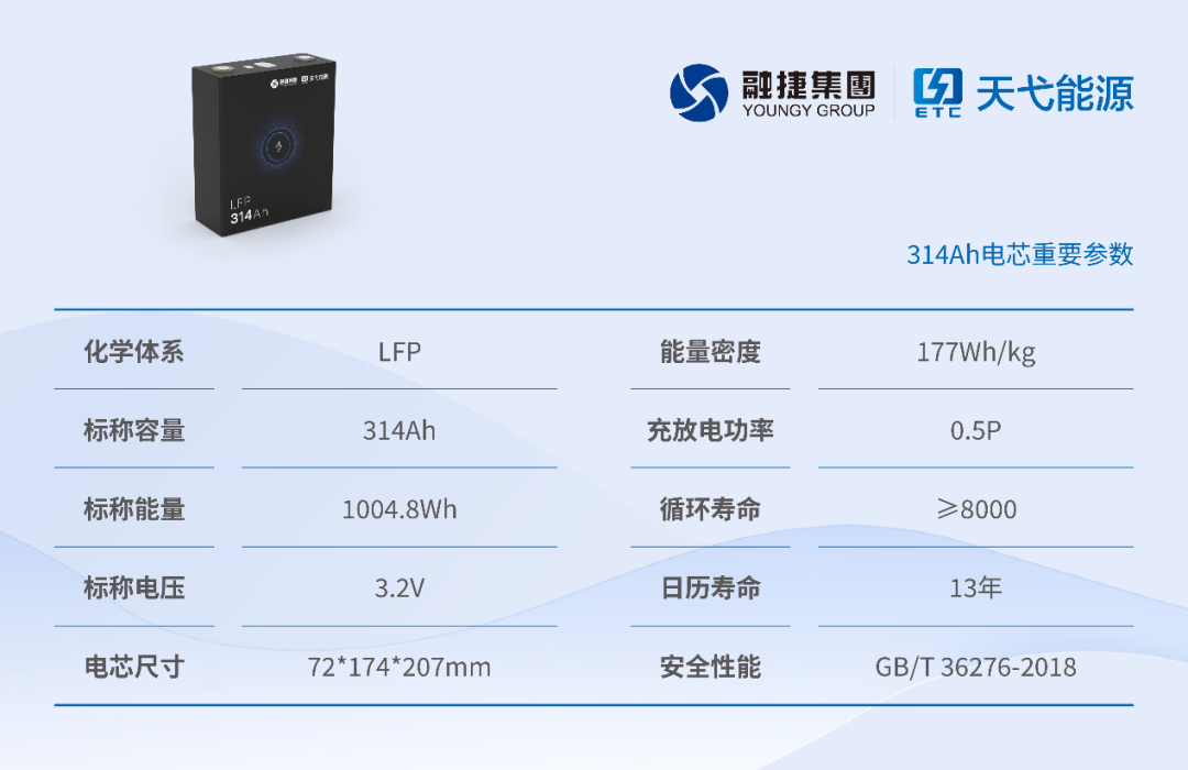 天弋能源最新下線的314Ah儲能電芯,謀準 “精準一度電”,出擊大儲市場。該款電芯通過多尺度級配正極、高浸潤性電解液、孔隙率梯度分布等技術(shù),實現(xiàn)內(nèi)阻降低15%,循環(huán)次數(shù)達到8000次以上。