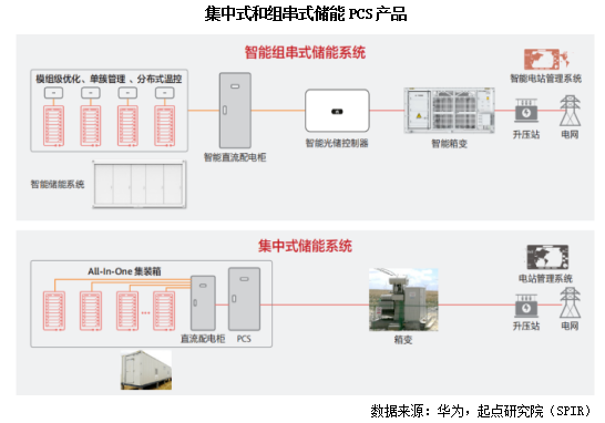 儲能PCS產(chǎn)品可以分為集中式、組串式、微型逆變器、儲能變流器及一體機等類型。根據(jù)儲能PCS的應用場景可以分為組串式和集中式兩大類,其中組串式主要應用于中小型儲能系統(tǒng),集中式應用于大型儲能系統(tǒng),產(chǎn)品形態(tài)適應源/網(wǎng)/荷側(cè)多種場景。不同應用場景對于儲能PCS的功能以及性能參數(shù)等的需求差異較大,因此針對不同的場景需要應用不同技術類型的儲能PCS。