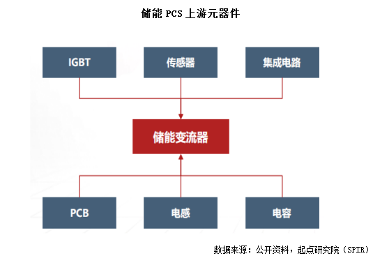 儲能PCS的上游主要是電子元器件,其中IGBT(絕緣柵雙極型晶體管)是核心部件,IGBT的性能決定了儲能PCS的性能。在儲能PCS中,材料成本占比約93%,其中占比最高的是結(jié)構(gòu)件(26.7%),其次是電感(13.8%)和半導體元器件(11.4%)。