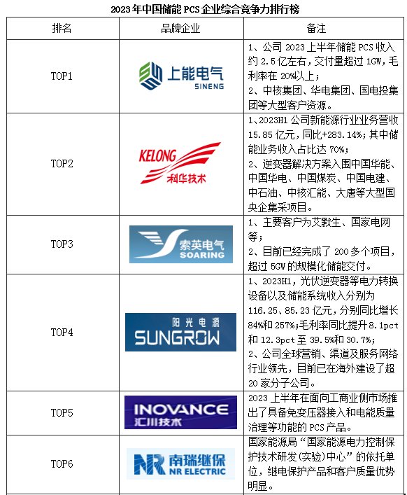 中國儲能逆變器(PCS)行業(yè)重點企業(yè):