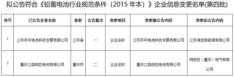 3.擬公告符合《鉛蓄電池行業(yè)規(guī)范條件(2015年本)》企業(yè)信息變更名單(第四批)