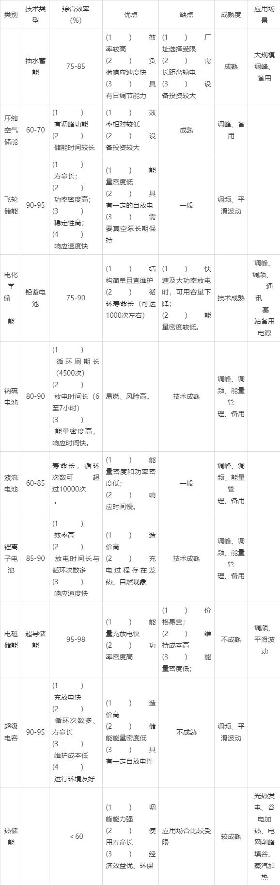 如表1所示,為不同新型儲能技術(shù)的特點分析。