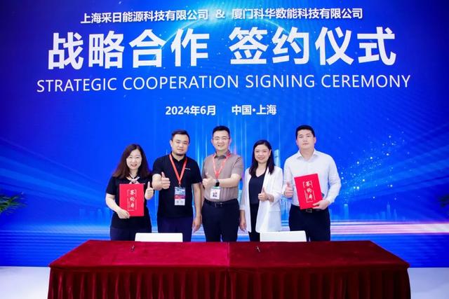 6月14日,采日能源技術(shù)中心副總經(jīng)理孫麗娜、廈門科華數(shù)能科技有限公司上海區(qū)域業(yè)務(wù)負(fù)責(zé)人許瑜平作為雙方代表,正式簽署了戰(zhàn)略合作協(xié)議。廈門科華數(shù)能科技有限公司總裁崔劍、副總裁李元元、采日能源總經(jīng)理王健鵬等雙方領(lǐng)導(dǎo)出席并見證簽約。