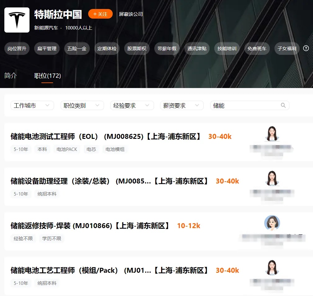 而有消息顯示,特斯拉給予上海地區(qū)儲能產(chǎn)品工程師(Megepack)的待遇為35~65k;對于上海地區(qū)儲能項(xiàng)目經(jīng)理待遇為30~60k。