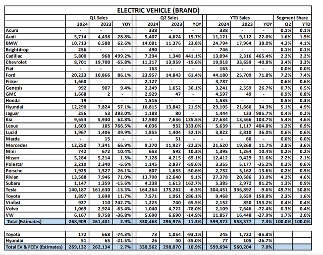 然而,由于競(jìng)爭(zhēng)的影響,特斯拉第二季度的美國(guó)電動(dòng)汽車市場(chǎng)份額首次跌破50%的門檻,降至49.7%。盡管特斯拉銷量下滑,但縱觀第二季度全美純電市場(chǎng),整體同比增長(zhǎng)了11.3%,雖然與上年同期相比,增速放緩,但上升趨勢(shì)也說明美國(guó)消費(fèi)市場(chǎng)對(duì)電動(dòng)汽車仍有一定的需求。