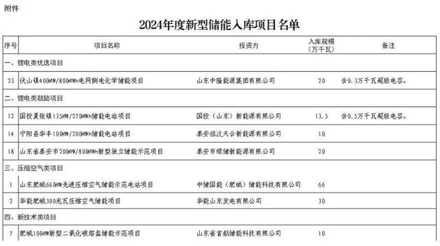 山東省能源局發(fā)布關(guān)于公布2024年度新型儲(chǔ)能入庫(kù)項(xiàng)目的公示