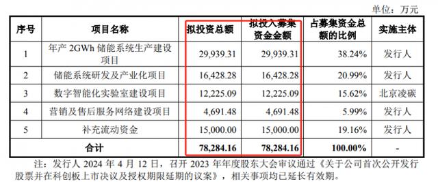 其中29939.31萬(wàn)元用于年產(chǎn)2GWh儲(chǔ)能系統(tǒng)生產(chǎn)建設(shè)項(xiàng)目,16428.28萬(wàn)元用于儲(chǔ)能系統(tǒng)研發(fā)及產(chǎn)業(yè)化項(xiàng)目,12225.09萬(wàn)元用于數(shù)字智能化實(shí)驗(yàn)室建設(shè)項(xiàng)目,4691.48萬(wàn)元用于營(yíng)銷及售后服務(wù)網(wǎng)絡(luò)建設(shè)項(xiàng)目,15000萬(wàn)元用于補(bǔ)充流動(dòng)資金。