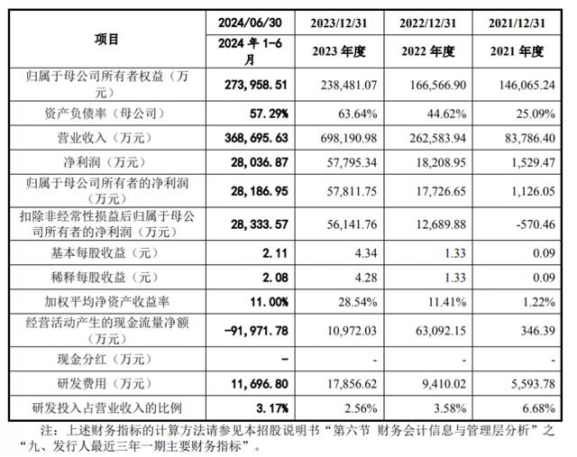 2021年-2024年上半年,其向前五名客戶合計(jì)的銷售額占營(yíng)業(yè)收入的比例分別為78.16%、83.70%、74.37%和58.43%。