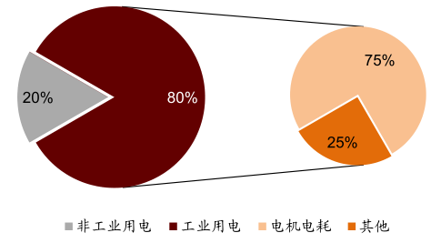 終端工業(yè)電機(jī)耗電約占全國總用電量的 60%