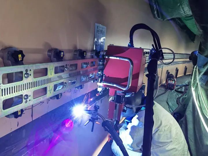 在三澳核電項(xiàng)目,智能激光跟蹤MAG自動(dòng)焊技術(shù)覆蓋鋼襯里底板、筒體到穹頂車間預(yù)制和現(xiàn)場(chǎng)安裝的全流程系列化、多工況場(chǎng)景的全面應(yīng)用,形成了具有完全自主知識(shí)產(chǎn)權(quán)的鋼襯里建造高效智能焊接先進(jìn)技術(shù)體系,具有顯著的經(jīng)濟(jì)社會(huì)效益。三澳核電一期項(xiàng)目累計(jì)焊縫長(zhǎng)度約3763m,共拍片2930張,一次合格率為97.2%,焊接質(zhì)量穩(wěn)定。