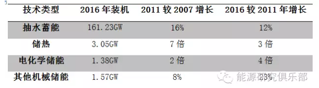 以2011年為分界點(diǎn),前5年儲熱裝機(jī)增速最快,較2007年增加7倍,后5年化學(xué)儲能則成為發(fā)展最快的技術(shù),詳見表3。