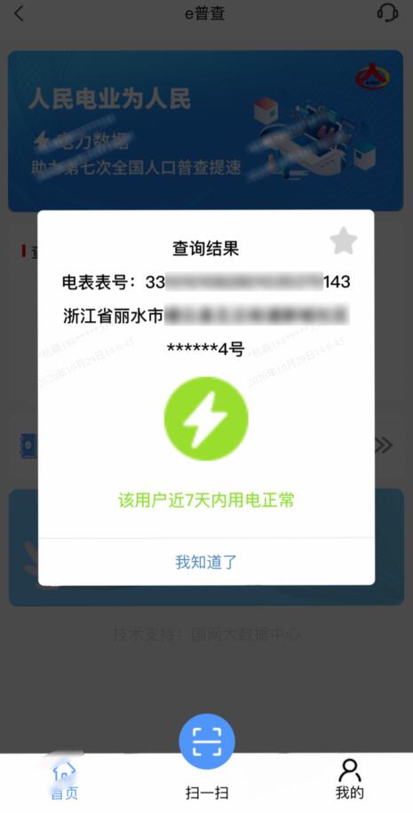 查詢操作也十分簡單:只需打開網(wǎng)上國網(wǎng)app,點(diǎn)擊“e普查”模塊,掃描住戶用電電能表上的條形碼(即表號),隨后將自動(dòng)生成綠、黃、紅三種查詢結(jié)果,快速呈現(xiàn)出該住戶的用電情況。
