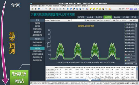 2014年12月,光伏發(fā)電信息采集和實時監(jiān)視;2015年11月,光伏發(fā)電短期和超短期預測;2016年1月,光伏發(fā)電概率預測;2016年7月,風光火蓄協(xié)調(diào)實時閉環(huán)控制,新能源調(diào)度運行指標統(tǒng)計系統(tǒng);全面實現(xiàn)可觀、可控、可預測。
