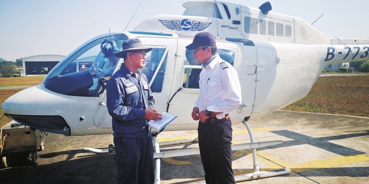 廣東電網公司佛山供電局輸電所智能運維人員利用直升機吊艙開展架空線路激光建模。 麥俊佳 攝
