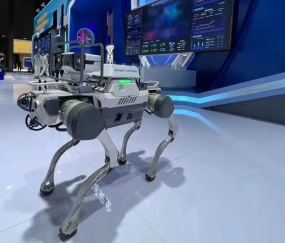▲數字化技術成為保障電網安全的重要支撐力量。圖為南方電網公司在網絡安全博覽會上展示的新型四足巡維智慧狗“吠云” 。林丹丹 攝