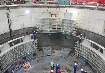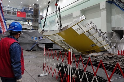 國(guó)網(wǎng)劉家峽水電廠2號(hào)機(jī)組定子機(jī)座吊裝到位
