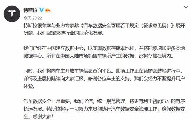 5月25日,特斯拉宣布已經(jīng)在中國建立了數(shù)據(jù)中心,將實現(xiàn)數(shù)據(jù)存儲本地化,并將陸續(xù)增加更多本地數(shù)據(jù)中心。所有在國內(nèi)市場銷售的車輛所產(chǎn)生的數(shù)據(jù)都將存儲在境內(nèi)。