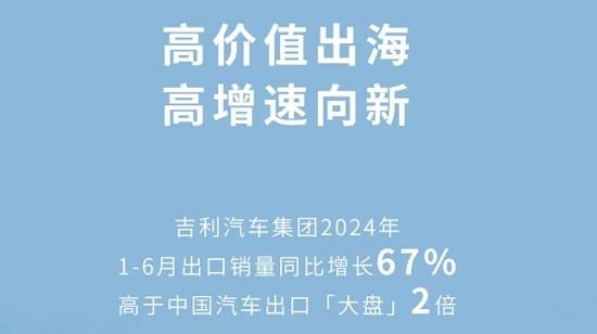 昨日,吉利汽車(chē)發(fā)布數(shù)據(jù)顯示,2024年上半年吉利汽車(chē)出口累計(jì)銷(xiāo)量達(dá)19.74萬(wàn)輛,同比增長(zhǎng)67%,高于中國(guó)汽車(chē)出口大盤(pán)兩倍,銷(xiāo)量、增速均創(chuàng)歷史新高。