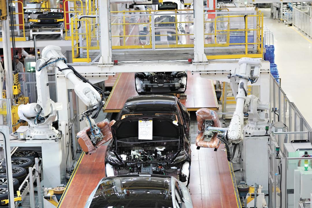 在總裝車間,汽車會經歷200多個加工工位(站點),其中很多站點都實現(xiàn)了無人化、全機器人操作。