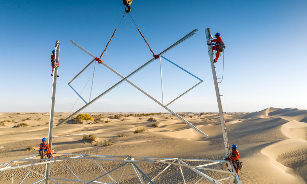 沙漠組塔服務(wù)南疆綠色發(fā)展