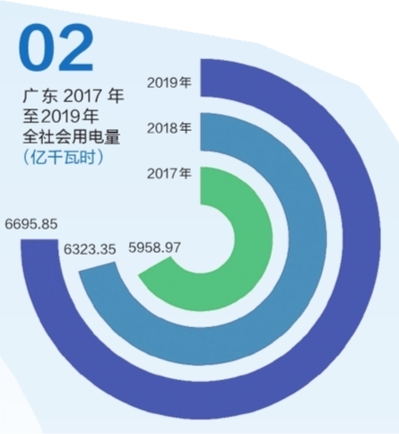 2019年,廣東省全社會(huì)用電量6695.85億千瓦時(shí),同比增長5.89%,用電增長總體保持平穩(wěn)。