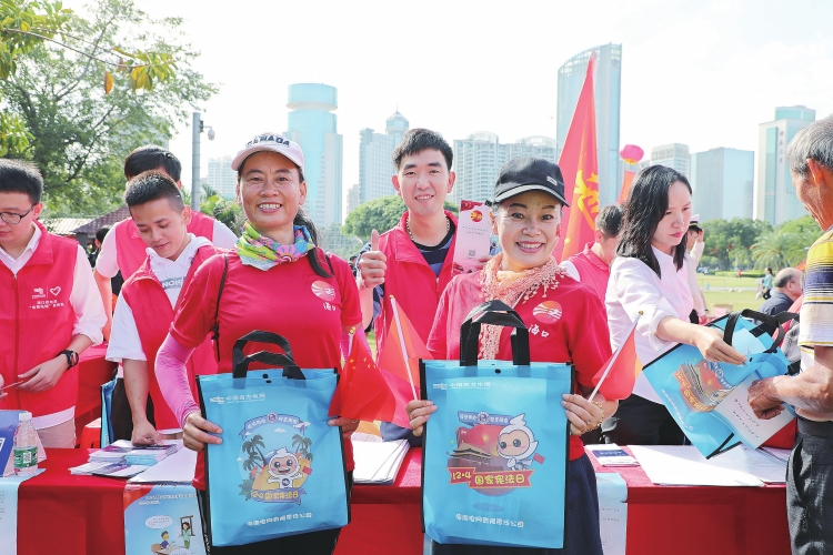 12月1日,海南省暨??谑?019年“憲法宣傳周”活動(dòng)在海口市萬綠園啟動(dòng),??诠╇娋衷诨顒?dòng)現(xiàn)場(chǎng)開展“依法用電、安全用電”宣傳。楊永光 攝