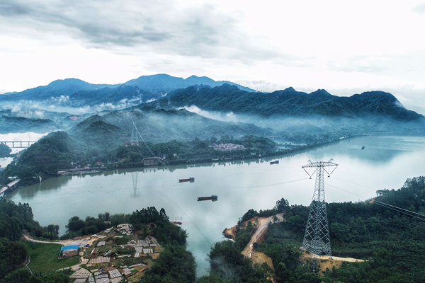 南方電網(wǎng)已形成“八交十一直”西電東送大通道,送電能力達(dá)到5800萬千瓦,五年累計送電量達(dá)到1.07萬億度。圖為昆柳龍直流工程廣東段線路跨越清遠(yuǎn)北江。