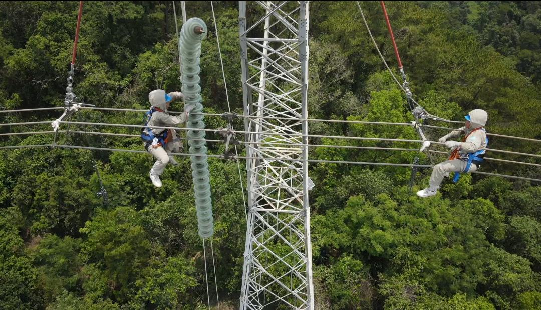 南方電網(wǎng)超高壓公司百色局運(yùn)維人員開(kāi)展500千伏線路帶電作業(yè),全力確保迎峰度夏期間西電東送大通道供電穩(wěn)定。(玉建生 攝)