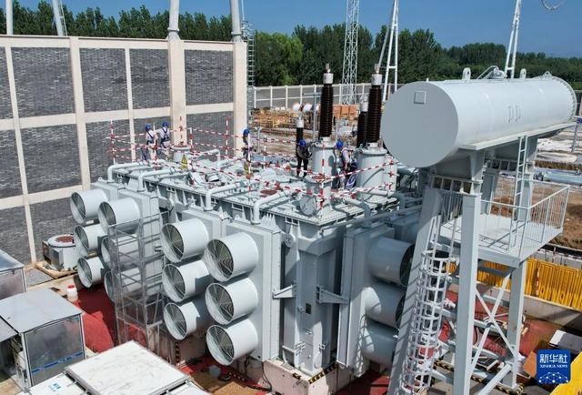 8月5日,工人在雄安(北京西)1000千伏特高壓變電站擴容工程建設工地施工。