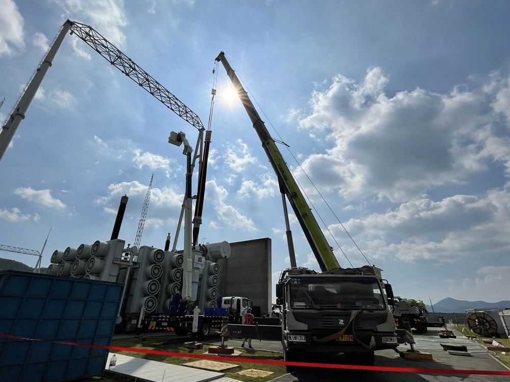 本網(wǎng)訊 “連接面上的所有緊固件已拆除,可以起吊。”“地面作業(yè)人員請注意,高空已準(zhǔn)備就位,開始起吊。”9月4日上午,一聲聲指令和機器的轟鳴聲,以及工作人員的相互提醒聲在1000千伏特高壓榕城變電站匯成一片。36名來自國網(wǎng)福建檢修公司的檢修人員正緊張開展我省首次特高壓1000千伏主變壓器GOE套管拉桿大修工作。