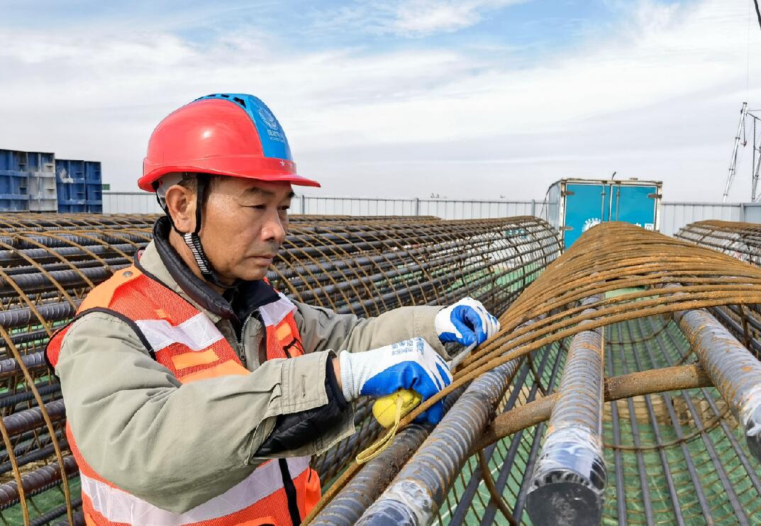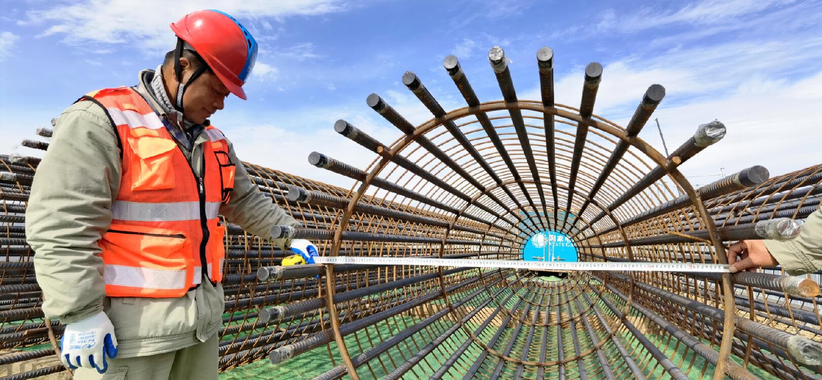 11月9日,在湖北省 鐘祥市豐樂鎮(zhèn)楓梓院村 ,湖北送變電公司施工員方漢斌在白鶴灘至江蘇±800千伏特高壓直流輸電線路(鄂7標(biāo)段)漢江大跨越現(xiàn)場, 認真檢查基礎(chǔ)鋼筋籠主筋長度、直徑。該工程是國家“西電東送”戰(zhàn)略部署的重點工程,也是加大基礎(chǔ)設(shè)施領(lǐng)域補短板力度的工程之一。工程建成后,對優(yōu)化國家能源配置、保障電力安全穩(wěn)定供應(yīng)、推動綠色發(fā)展等具有重要戰(zhàn)略意義。(張周、郭暉 攝影)