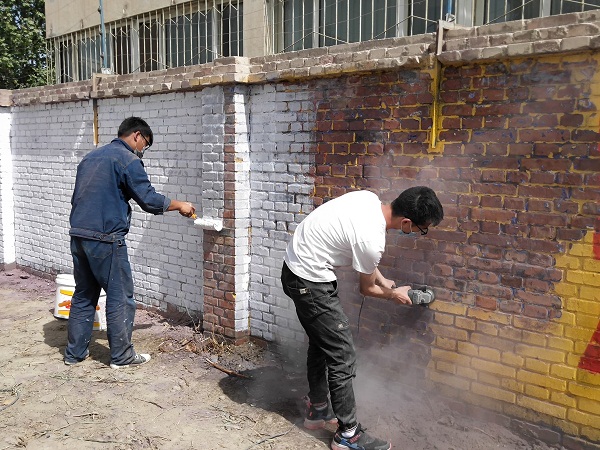 烈日當(dāng)頭,33℃的高溫絲毫沒(méi)有影響到大家干活的熱情。修繕路基的男生們和著水泥、手拿磚塊堆砌出一條筆直的長(zhǎng)線;清理墻面的男生也不甘示弱拿著鋼絲刷,拎著裝滿油漆的白桶、滾筒刷來(lái)到圍墻外清理墻面;打掃庭院的女孩們拿著手中的勞動(dòng)工具攀高爬下、忙忙碌碌。到了午休時(shí)分,為保質(zhì)保量完成任務(wù),張志龍,作為墻面清理負(fù)責(zé)人的他,選擇獨(dú)自留下,汗水一遍又一遍打濕他身穿的工作服,各色的粉塵混合著白色的油漆落在他的身上。他說(shuō):“今天雖然很累很辛苦,但看到俺們自己的勞動(dòng)成果,能給大家創(chuàng)造好的環(huán)境,我覺(jué)得很有意義”。言辭之間,他充滿著自豪和快樂(lè)。直到晚上快十點(diǎn),完成門(mén)口的墻面粉刷任務(wù),幾個(gè)人才帶著一身的泥土回家吃飯。