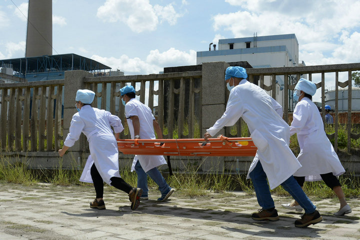 演練以該公司老機(jī)3號(hào)主變壓器異常保護(hù)動(dòng)作跳閘,變壓器冒煙起火展開,運(yùn)值班員第一時(shí)間撥打電話報(bào)警、向值長(zhǎng)及相關(guān)領(lǐng)導(dǎo)報(bào)告,啟動(dòng)火災(zāi)事故應(yīng)急預(yù)案。同時(shí)按照值長(zhǎng)指令停止運(yùn)行中的設(shè)備并切斷所有相關(guān)設(shè)備電源,迅速利用附近的滅火器組織初起火災(zāi)撲救,等待消防隊(duì)救援。5分鐘后消防隊(duì)趕到現(xiàn)場(chǎng),消防員立即鋪設(shè)消防水帶進(jìn)行滅火,經(jīng)過(guò)10多分鐘的緊張戰(zhàn)斗,火災(zāi)被撲滅,演練圓滿結(jié)束。