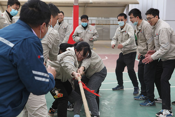 活動(dòng)由《五人六足跑》《合作共贏》《黨史知識(shí)我知道》《紅歌接力》《拔河大賽》等5個(gè)項(xiàng)目組成。在《五人六足跑》《合作共贏》項(xiàng)目中,將各參賽隊(duì)員的默契表現(xiàn)展現(xiàn)的淋漓盡致,他們齊心協(xié)力、團(tuán)結(jié)一致,充分展示了廣大職工充滿活力、拼搏向上的精神面貌?!饵h史知識(shí)我知道》《紅歌接力》項(xiàng)目將整場(chǎng)活動(dòng)推向高潮,尤為突出的是廣大職工掌握黨史知識(shí)的扎實(shí)度,每遇一題,各參賽隊(duì)反應(yīng)迅速,競(jìng)相展開黨史知識(shí)作答,正確率高、回答速度快,比賽中難分伯仲。在《拔河大賽》項(xiàng)目中,各隊(duì)都顯示出最強(qiáng)的比賽陣容,只見隊(duì)員們緊握長(zhǎng)繩,卯足了勁拼命往后拉,哨子聲、吶喊聲此起彼伏,現(xiàn)場(chǎng)氣氛異常激烈。