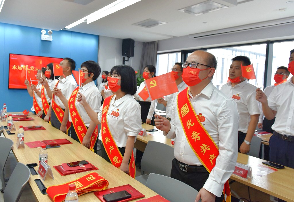 “我志愿加入中國共產(chǎn)黨,擁護黨的綱領(lǐng),遵守黨的章程……”張宇帶領(lǐng)新黨員宣誓入黨以及全體黨員重溫了入黨誓詞。