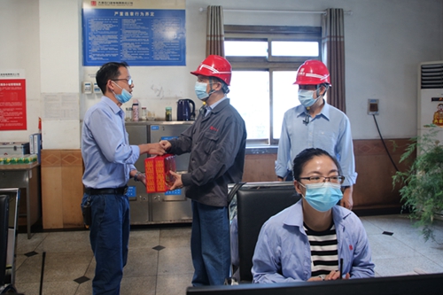 該公司黨委委員、副總經(jīng)理、工會負責人雷小平一行先后來到燃運運行集控室、環(huán)保運行集控室、職工食堂、發(fā)電運行集控室以及控制、燃管、檢修等部門,為生產(chǎn)一線人員、后勤人員送去飲料、涼茶等慰問品。在各生產(chǎn)部門運行集控室,雷小平與生產(chǎn)一線人員握手交談,詢問了燃煤接卸、機組上煤、運行調(diào)整及人員值班等情況,對生產(chǎn)一線人員堅守在迎峰度夏第一線戰(zhàn)高溫、斗酷暑、保發(fā)電的奉獻精神表示肯定。他鼓勵各部門人員鼓足干勁,齊心協(xié)力做好迎峰度夏各項工作,助力企業(yè)切實履行好保電保民生的社會責任:燃運人員要直面當前四臺機組大負荷運行燃煤頂格消耗的壓力,做好來煤集中接卸以及機組上煤工作;集控、環(huán)保運行人員要把迎峰度夏各項安全發(fā)電措施做好做實做到位,確保四臺機組大負荷時期安全、環(huán)保發(fā)電;檢修人員要加強值班及時消除設備缺陷,確保不因設備問題影響機組帶負荷。在職工食堂,雷小平對后勤人員在當前疫情形勢下采取工作餐打包方式,竭盡全力滿足廣大員工早中晚就餐需求所付出的辛苦與努力表示感謝。他還叮囑大家做好防疫及防暑雙重措施,確保人員安全,全力維護企業(yè)安全穩(wěn)定的良好局面。