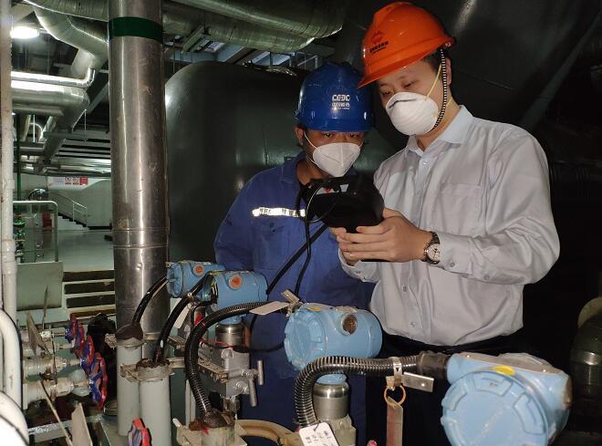 羅謝超正在檢查流量差壓變送器顯示是否正常