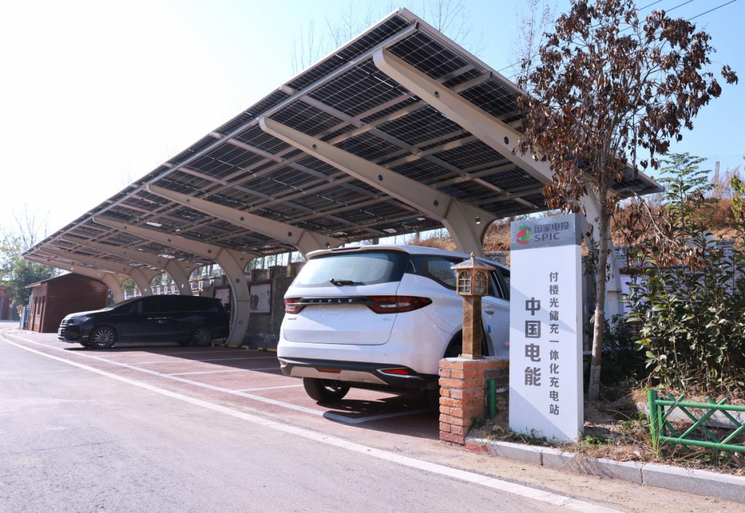 ▲中國電能在河南省蘭考縣付樓村建設(shè)的光儲(chǔ)充一體化充電站