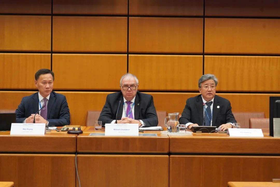 當(dāng)?shù)貢r(shí)間18日上午,余劍鋒與國際原子能機(jī)構(gòu)副總干事丘達(dá)科夫共同在“驅(qū)動(dòng)未來、引領(lǐng)零碳之路”主題邊會(huì)上致辭。