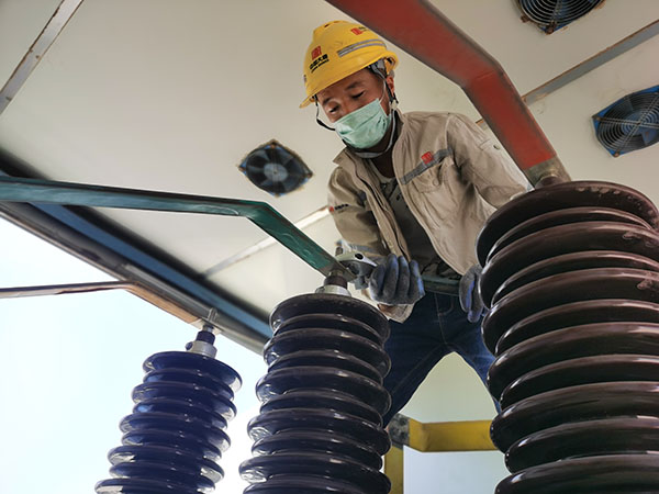 工作人員回裝變壓器高壓側電纜
