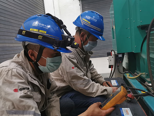 工作人員測量柴油發(fā)電機(jī)蓄電池電壓