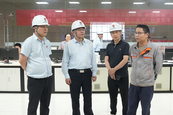 段新民一行先后深入該公司三期項目建設現(xiàn)場、一二期發(fā)電集控室,對項目建設進度、現(xiàn)場施工安全及重點工作推進情況進行了詳細了解,同時詢問了該公司安全生產(chǎn)、電力保供以及設備設施運行等情況。