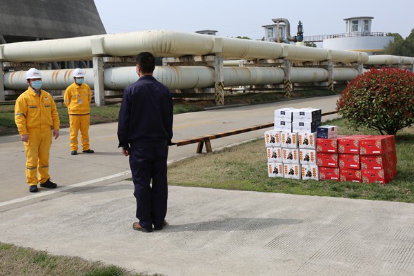 中國電力網(wǎng)訊 嚴(yán)峻的疫情形勢牽動人心,奮戰(zhàn)在防控一線的后勤服務(wù)者們各司其職、各盡其責(zé),為打贏這場沒有硝煙的戰(zhàn)爭不懈努力,堅守抗疫。3月11日上午,南京化學(xué)工業(yè)園熱電有限公司(以下簡稱:公司)領(lǐng)導(dǎo)及工會,為抗疫一線的后勤服務(wù)人員送去關(guān)心慰問,鼓勵他們再接再厲,擔(dān)當(dāng)作為,繼續(xù)扎實(shí)做好疫情防控各項(xiàng)工作,堅決打贏疫情防控阻擊戰(zhàn)。
