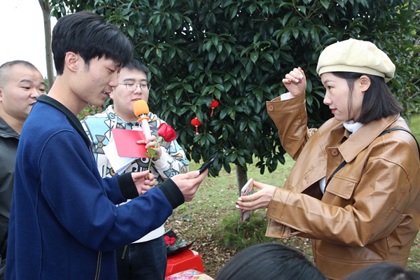 青年聯(lián)誼活動在熱情洋溢的氛圍中拉開了序幕?;顒觾热莅ㄗ晕医榻B、才藝展示、有獎?chuàng)尨稹F(xiàn)場分組、游戲環(huán)節(jié)和玫瑰結緣牽手等。幾輪有獎競答,預熱了活動現(xiàn)場。隨后,各單位隊長開始挑選隊員,進行分組,分成了紅、藍、橙、紫4組。在主持人的帶動下,每組以競賽的方式完成“你演我猜”和“雙龍戲珠”等一系列豐富多彩的游戲環(huán)節(jié),青年男女之間進行了一次次的互動交流和團隊協(xié)作,緩解了初次見面的緊張羞澀,也讓大家在歡聲笑語中,拉近距離、加深了解,將現(xiàn)場氣氛推向了一個又一個高潮。