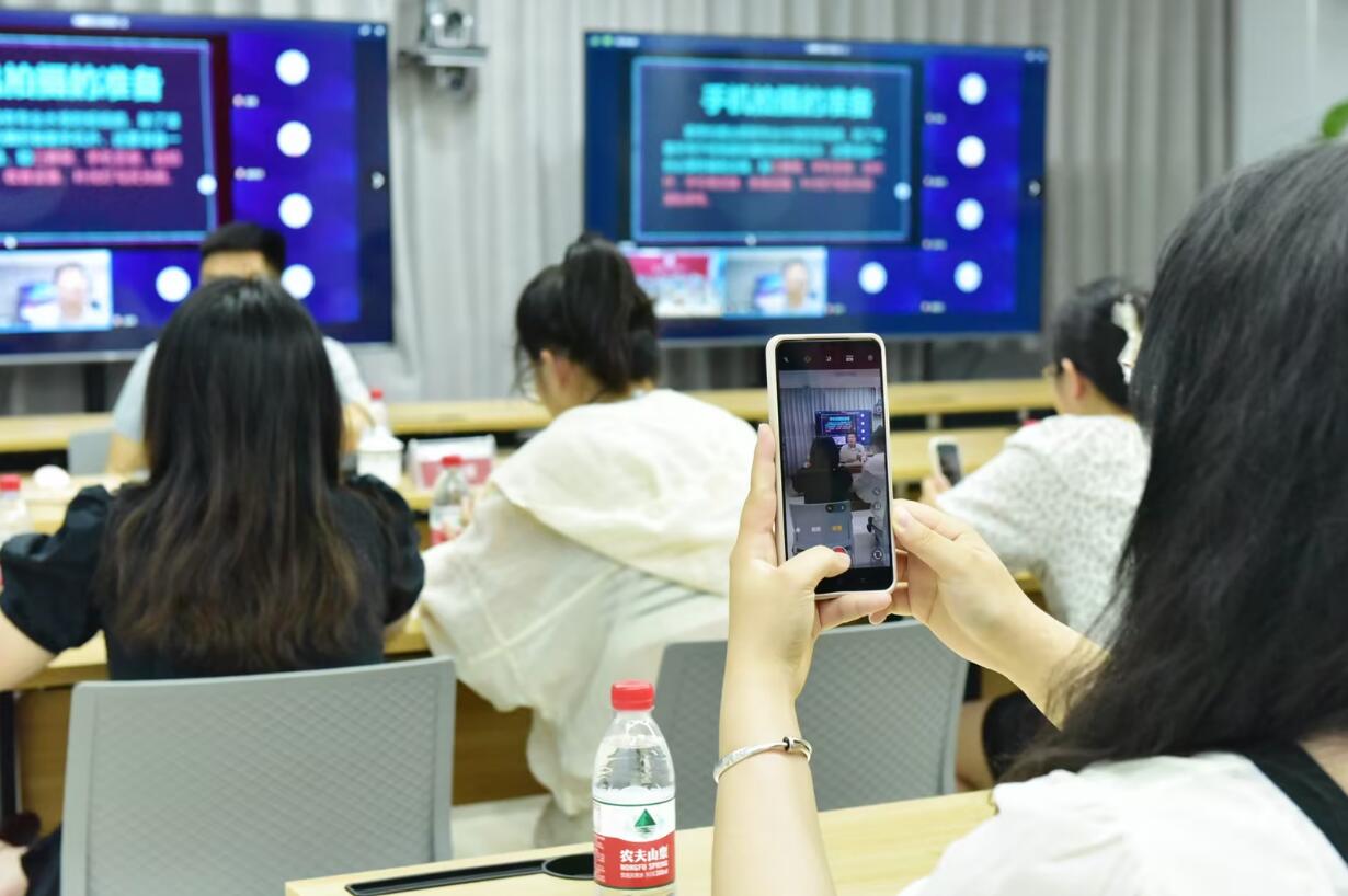 培訓(xùn)采取“線上+線下”的方式,培訓(xùn)中,丁老師運用“理論+案例+實操”的方法,以大量優(yōu)秀作品為例,結(jié)合自身長期以來從事短視頻創(chuàng)作實戰(zhàn)經(jīng)驗,從手機拍攝的景別選擇、光線調(diào)整、畫面構(gòu)圖等方面對拍攝知識進行了詳細講解與分析,同時為大家推薦了幾款視頻剪輯軟件,并鼓勵大家,拍攝一定要勇于嘗試、敢于試錯,盡情在實踐中不斷嘗試各種技巧和方法,有效提升參加學(xué)員的興趣和熱情。學(xué)員們紛紛表示,這次培訓(xùn)受益匪淺,在今后的工作和生活中,將學(xué)以致用,不斷探索提升,用更加專業(yè)的水平記錄工作和生活中的影像。課程最后,老師還與學(xué)員們就手機拍攝與制作過程中遇到的各種問題進行了交流。