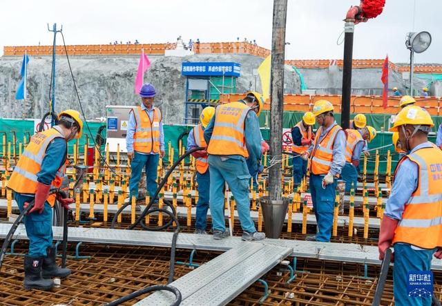 7月28日,施工人員在中廣核寧德核電站5號(hào)機(jī)組施工現(xiàn)場(chǎng)澆筑混凝土。新華社發(fā)(中廣核福建寧德核電有限公司供圖)