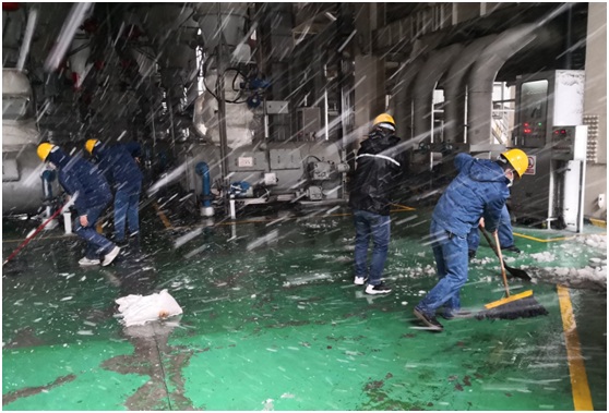 “請(qǐng)巡檢人員立即加強(qiáng)對(duì)現(xiàn)場重點(diǎn)區(qū)域的檢查與隱患排查工作,并做好個(gè)人防護(hù)措施”。剛一接班,電廠運(yùn)行部集控二值班組就迎來了巨大的考驗(yàn)。從2月15日凌晨開始,雪下得越來越大,確認(rèn)完值內(nèi)的相關(guān)交待后,周軍立刻趕往現(xiàn)場仔細(xì)查看。